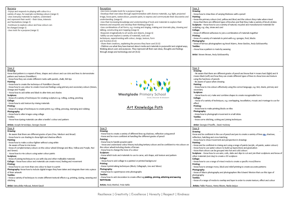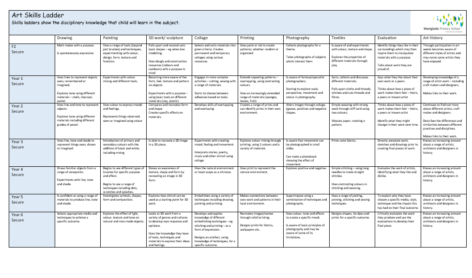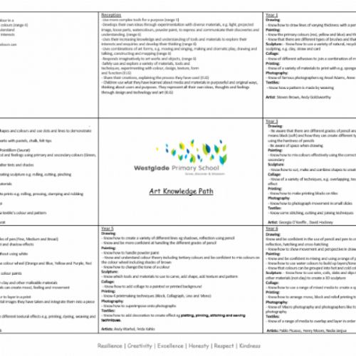 You can find out more about how we teach our Art and Design curriculum at Westglade by viewing our policy.