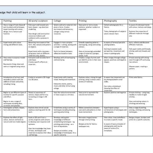 In order for this to be achieved, the knowledge paths were created to map out the minimum level of knowledge our children should have in art and design within each year group. To complement this, we developed a skills ladder for art and design to show the progression from Nursery to Year 6, which demonstrates how our children’s skills will build from one year to the next. First and foremost, it has been the professional knowledge of our children that we have used to ensure that our art and design curriculum is meaningful and is appropriate for all of our children, so that as our children progress, they should be able to think critically and develop a more rigorous understanding of art and design.