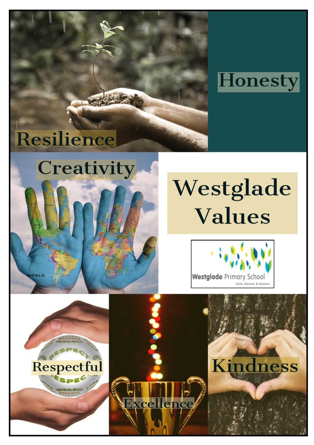 At Westglade Primary school children are treated as unique, talented individuals who deserve the absolutely best education that can be provided. Children are encouraged to believe in their potential to be their best selves. In order to achieve this we ensure that every child is provided with a stimulating, challenging and creative curriculum and environment. We aim to ensure that children leave their Primary school showing courage, kindness, friendship, character and a strong sense of wellbeing. Children are at the heart of all we do. We discover, grow and blossom together.