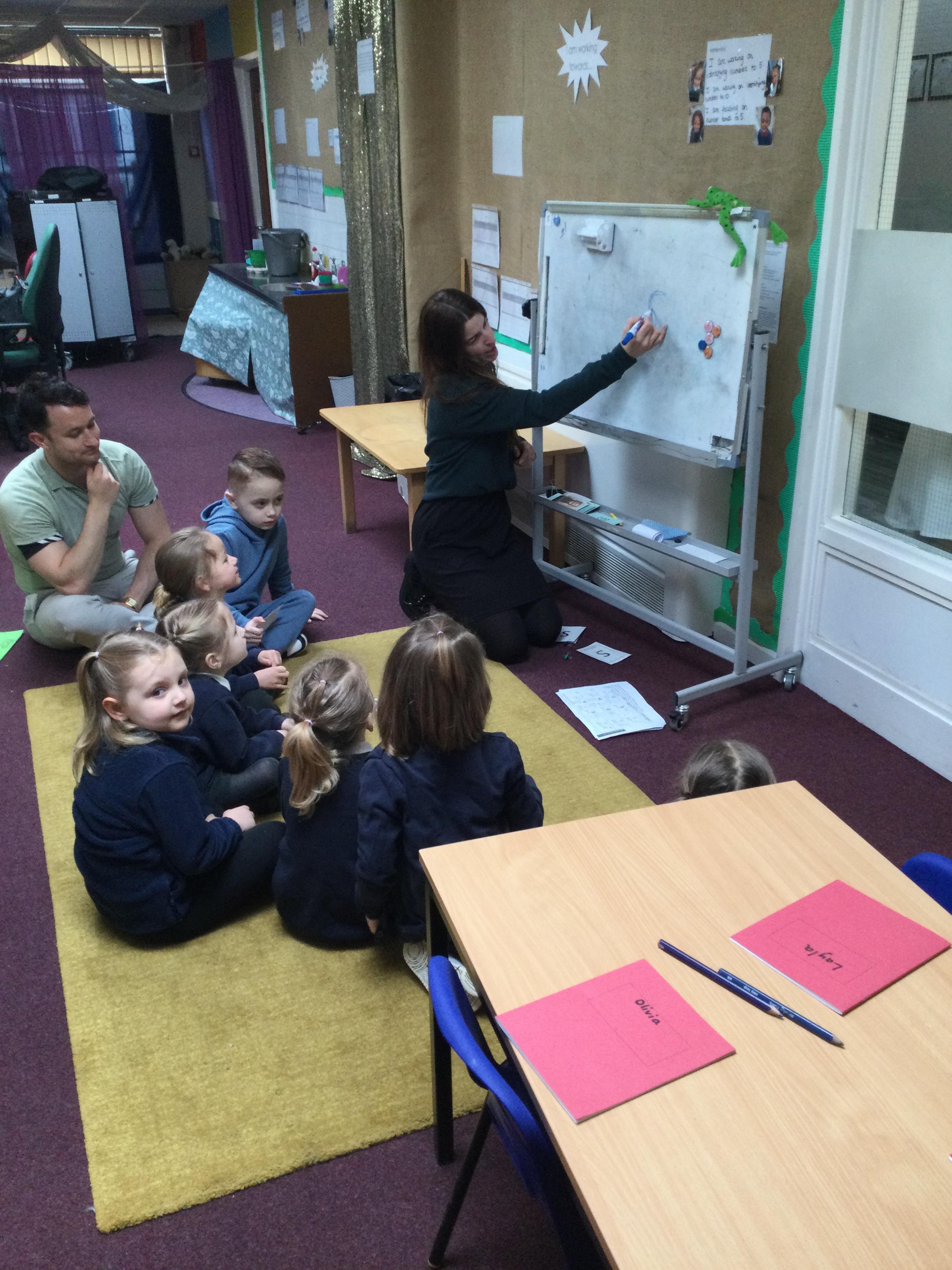 Read Write Inc begins with our very youngest children in Nursery. They begin with a weekly sound, learning to read and write that sound while also practising oral blending.